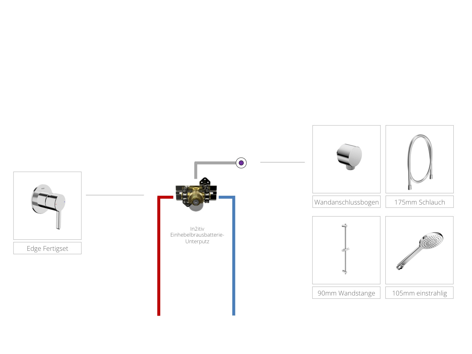 [1-Edge] Einhebelbrausenarmatur Fertigset mit Handbrause und Wandstange