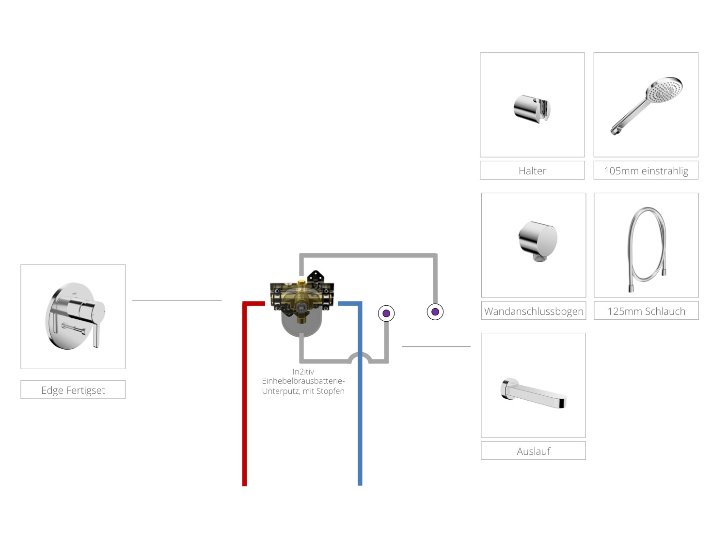 [3-Edge] Einhebelbrausenarmaturmit Stopfen-Fertigset mit Handbrause und Halter, Auslauf